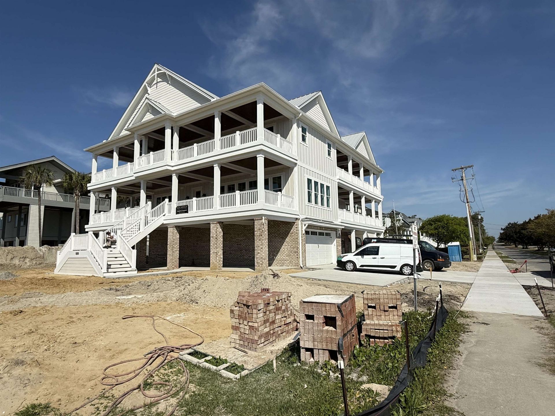 Welcome to luxury coastal living at its finest. Located in the highly sought-after Tilghman Estates of North Myrtle Beach, this exceptional second-row ocean-view residence offers an unparalleled blend of elegance, craftsmanship, and elevated beachside living. Spanning an impressive 4,956 heated square feet, and an additional 2400 square ft of unheated useable area, this stunning home is crowned with a durable metal roof and has been professionally designed and furnished, showcasing curated décor, high-end finishes, and exceptional attention to detail throughout. A private elevator provides effortless access to all levels, adding both convenience and sophistication. At the heart of the home is a grand, chef-inspired kitchen, designed to impress even the most discerning buyer. Featuring two expansive luxury islands, premium appliances, and custom cabinetry, this space is ideal for entertaining, family gatherings, and elevated everyday living. Seamless indoor-outdoor living is achieved with extensive waterproof wraparound porches, front and back, perfect for enjoying ocean views, coastal breezes, morning coffee, or sunset cocktails. The private outdoor oasis is complete with a resort-style pool and hot tub combination, offering the ultimate space for relaxation and entertaining. This remarkable property offers exceptional functionality with a spacious 4-car garage, along with a separate internal garage ideal for additional storage and/or secure parking for golf carts, perfectly suited for the relaxed, coastal lifestyle Tilghman Estates is known for. Generous living and gathering spaces flow beautifully throughout the home, thoughtfully designed to balance grandeur with comfort. The elevated second-row location captures beautiful ocean views, while the homes prime setting is just steps to the beach! Enjoy the convenience of golf-cart-friendly living, providing easy access to the finest dining, shopping, and entertainment North Myrtle Beach has to offerall while nestled within one of the areas most prestigious neighborhoods. Whether envisioned as a luxury primary residence, an exceptional second home, or a high-performing rental investment, this remarkable property offers versatility, prestige, and lifestyle in equal measure. This is more than a homeits a rare opportunity to own a professionally curated luxury retreat in Tilghman Estates, where elegance, location, and coastal living converge. Home is currently under construction with an expected completion date of April 30, 2026. Interior of the home is completed, waiting on the pool and landscaping to be finished, and the furniture to be moved in!