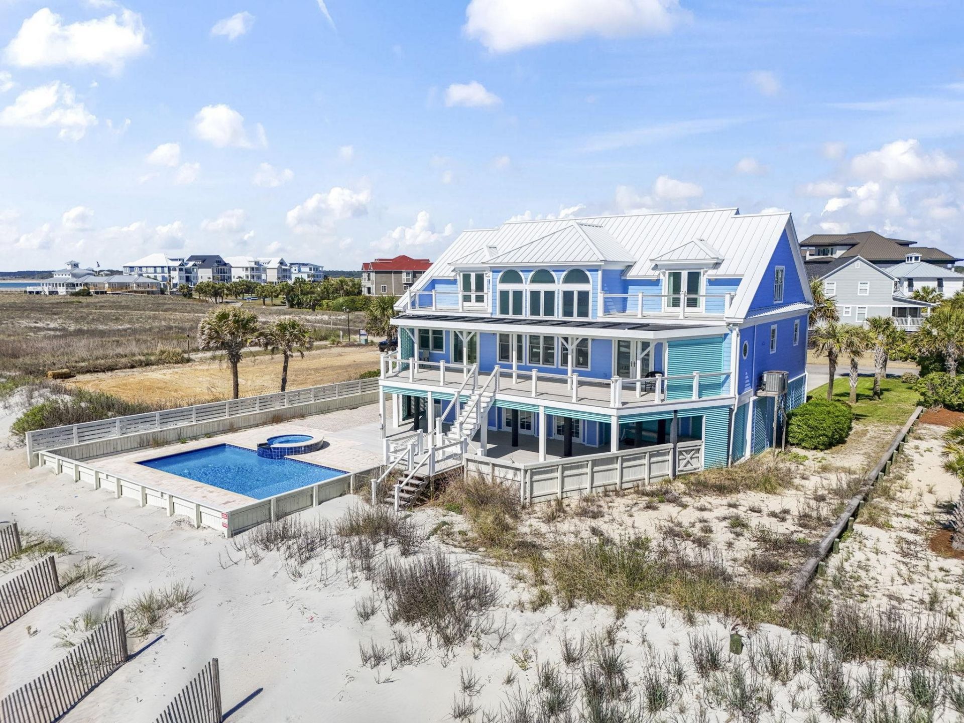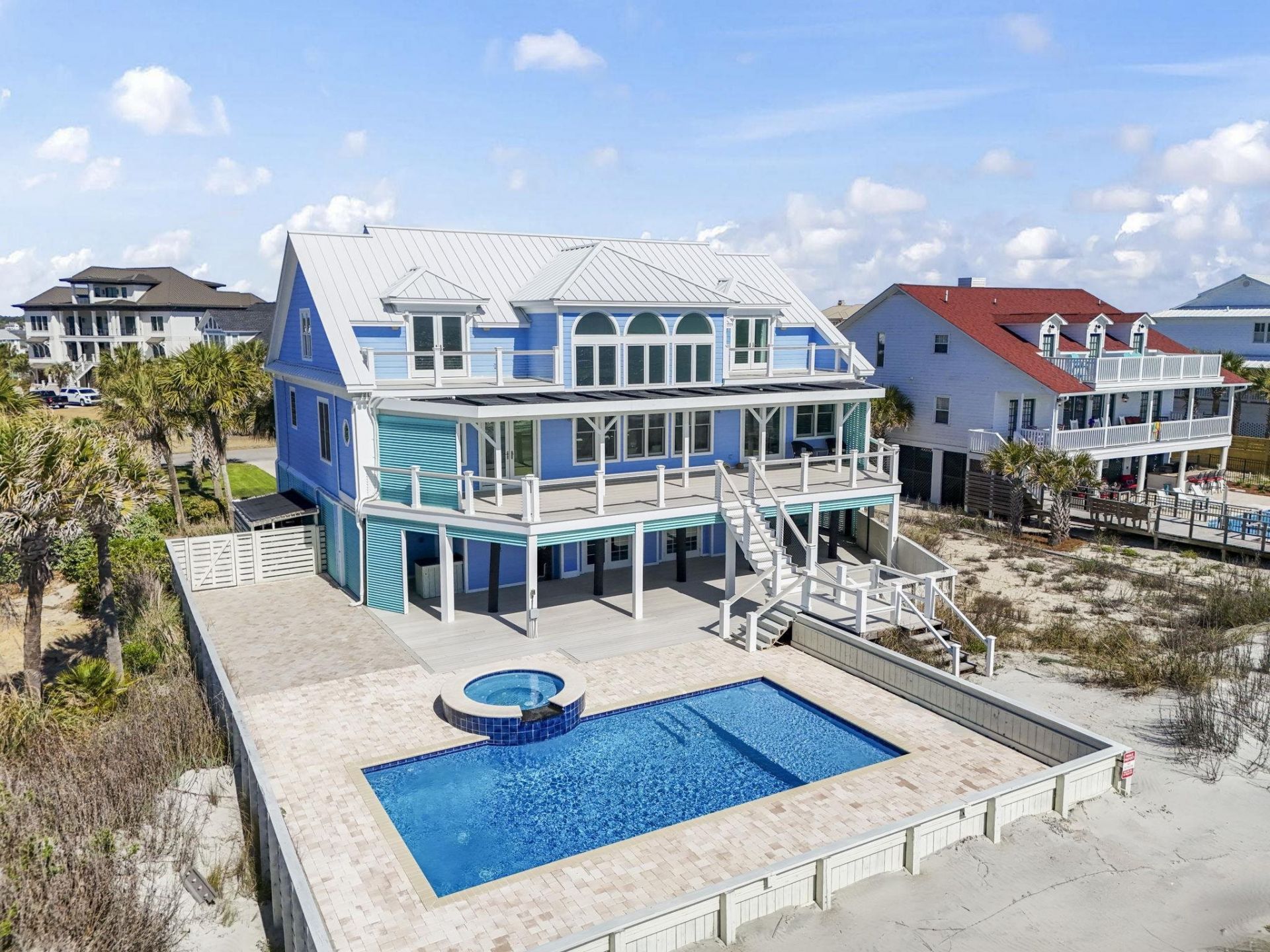 Welcome to Serenity, a fully remodeled 5-bedroom, 6-bathroom oceanfront retreat in the gated Inlet Harbour community of Garden City Beach, South Carolina. This raised beach home offers panoramic Atlantic Ocean views, and inlet view, it has six amazing decks offering spectacular sunrises and breathtaking sunsets, direct private beach access, a saltwater capable pool with spa surrounded by pavers and decking, and an enclosed hot tub for year-round use designed for both luxury coastal living and premium vacation rental performance. As soon as you enter the front door you are greeted by amazing ocean views seen through a wall of windows. The first level includes an open-concept main level with panoramic hurricane rated windows in the great room with a striking extra-large windmill fan and cozy propane fireplace for warmth and ambiance. The kitchen continues with the ocean view windows, and features and a large, covered deck overlooking the Atlantic. The updated kitchen is designed for accommodating large gatherings and gourmet cooking, includes high end Samsung black stainless-steel appliances which includes a drop in stove with the oven having an integrated air fryer, a retractable electric exhaust fan, and additional wall oven to give maximum cooking flexibility, all granite countertops, glass tile backsplash, loads of storage, a center granite extra-large island, side granite breakfast bar, and ocean-view dining that allows the ocean views from every seat, with large matching granite buffet and with access to the ocean front deck. This level has a remodeled laundry room with Samsung washer and dryer, and updated cabinetry with quartz countertops and lots of storage. A sunroom off the great room and master suite, with amazing ocean views to enjoy year-round. The primary first master suite offers semi-private deck access and a spa-inspired ensuite with rainfall showerhead, heated floors, a luxurious freestanding whirlpool tub with modern fixtures, dual modern sleek vanities with bowl sinks, his and hers walk in closets, mosaic tilework, all providing a private sanctuary. Adjacent to the master there is another bedroom which can be used as bedroom or as an office with its own private half-bath. There also is another guest bedroom with an ensuite. On the second-floor there are two large master suites private decks with breathtaking ocean views, and newly renovated ensuites. A loft living area with versatile use, ocean views and with a second-floor front balcony with serene inlet views and amazing sunsets. This three-level elevated construction house has been renovated to include many upgrades including kitchen updates, bathroom updates, new paint, new steel roof, Premium Pella hurricane windows and doors throughout, new HVAC units, new two tankless water heaters, spray foaming for energy efficiency, a wheelchair-accessible interior elevator, two-car under house garage, Hardi Plank siding, Timberline decking with cable railings, solar pool heater