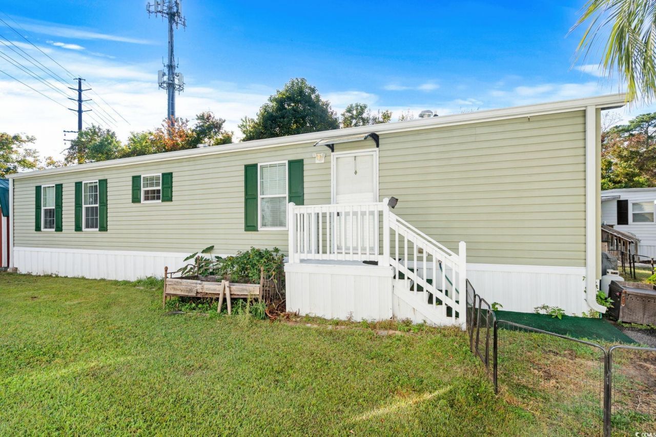 Discover comfort and convenience in this inviting 2-bedroom, 2-bathroom manufactured home located in the sought-after community of Windjammer Village. The open floor plan creates a welcoming flow between the main living areas, highlighted by a warm color palette that adds to the homes cozy charm. The kitchen provides plenty of space for meal prep and storage, while the adjoining dining and living areas make it easy to relax or entertain. The primary bedroom offers a peaceful retreat with a ceiling fan, private bathroom featuring extra storage, and a spacious shower. A split bedroom layout ensures privacy, with the second bedroom and full bathroom situated on the opposite side of the home. Enjoy the outdoors from your covered carport or relax in the backyard that backs up to a wooded area for added privacy. A storage shed provides additional convenience for tools or beach gear. Windjammer Village residents enjoy access to a refreshing community pool and a friendly, coastal atmosphere. The location is hard to beat, less than two miles from the pier and the sandy shores of Garden City Beach, where you can spend your days enjoying the ocean breeze and local seaside attractions. Just under three miles away, the renowned Marsh Walk in Murrells Inlet offers waterfront dining, live music, and a vibrant mix of popular eateries to explore. The community also provides easy access to shopping, golf, and entertainment, making it a wonderful choice for those seeking both relaxation and convenience whether as a full-time residence or a coastal getaway. HOA information has been provided to the best of our ability. All information should be verified and approved by the buyer. Square footage is approximate and not guaranteed. The buyer is responsible for verification.