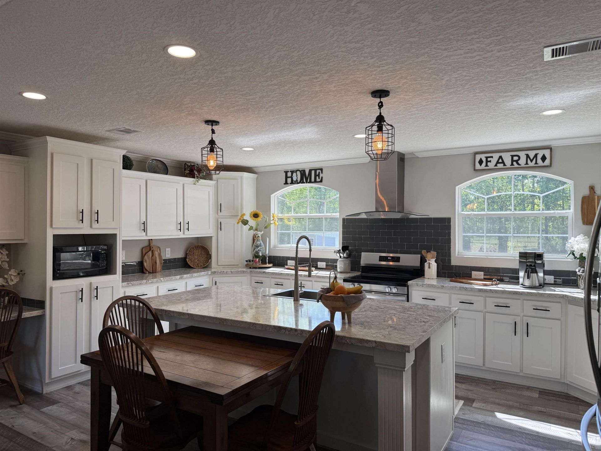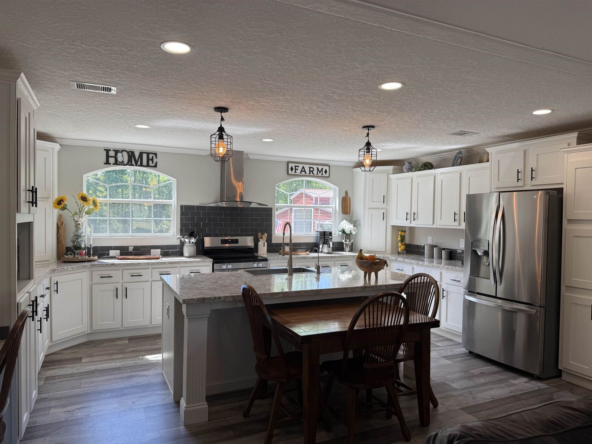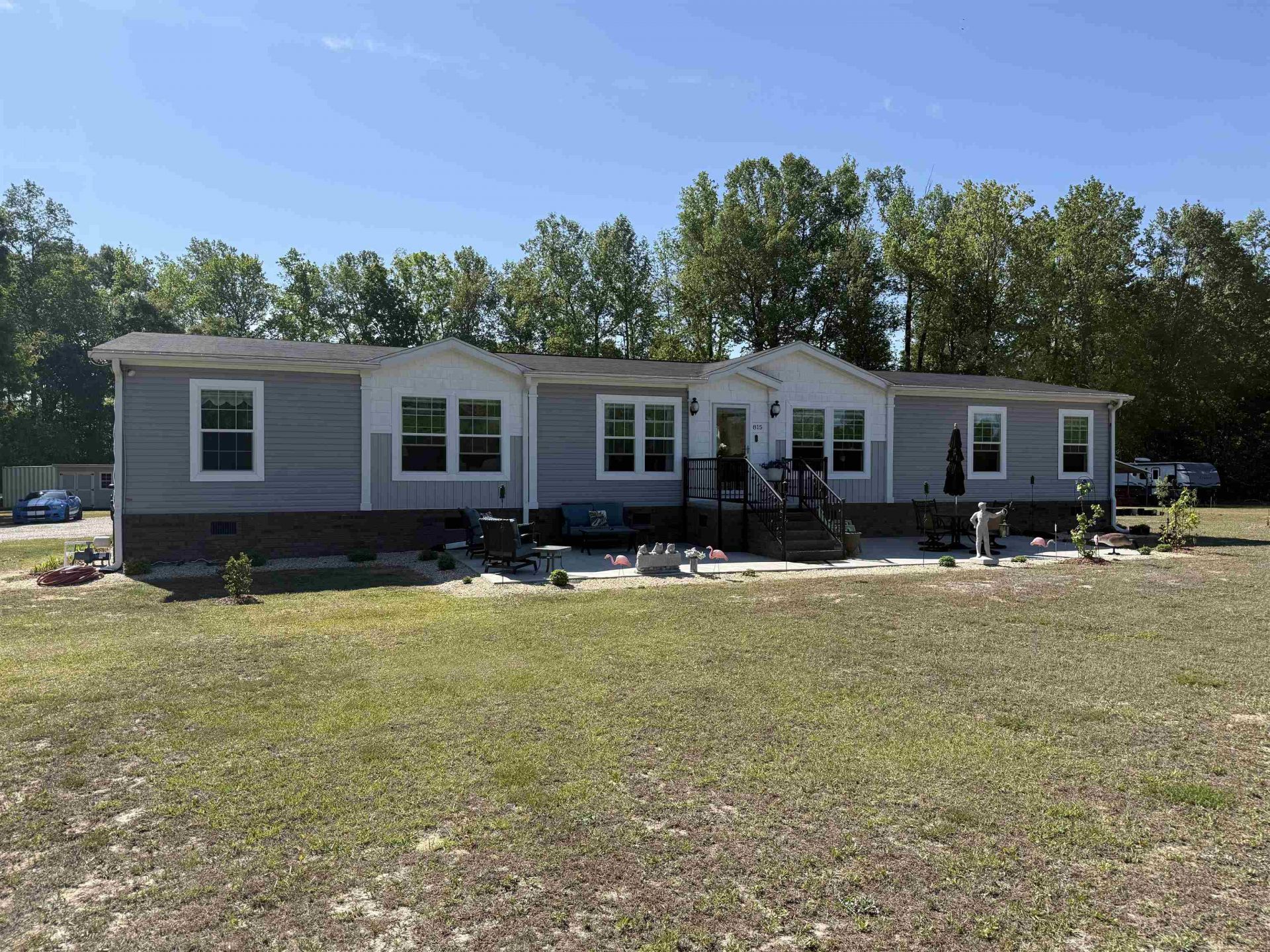 4 bedroom 2 full bath manufactured home with approximately 8.35 acres of land with fish pond out front. There is a front porch and patio out back as well. A 45x30 barn out back with cement flooring and a covered back porch off of the barn for sitting out and enjoying the county life. Also there are 2 TVs that will remain that are wall mounted on the barn. 2, 40 foot storage containers, a 12x12 shed, and a lean to off the barn. There is a hook up for campers and a generator and a 50 amp service pole. The pond on the property has its own well.